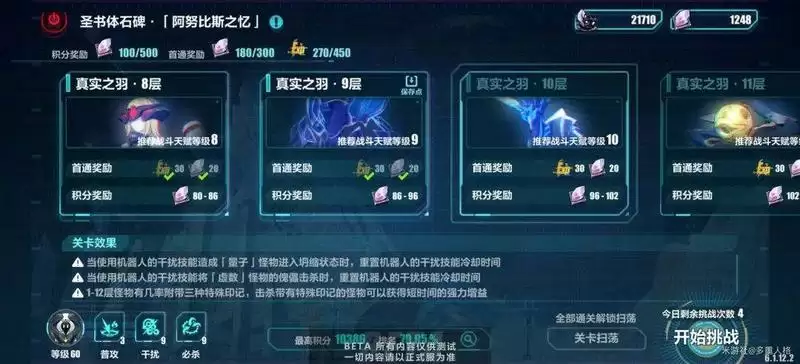 类似于高难本,挑战后能够获取丰富的奖励,但是难度较高,建议在机器人的等级够高后再去挑战。目前测试服中一共有三座这样的塔,而且每座塔的敌人等级会越来越高,看来是个长期的挑战玩法。