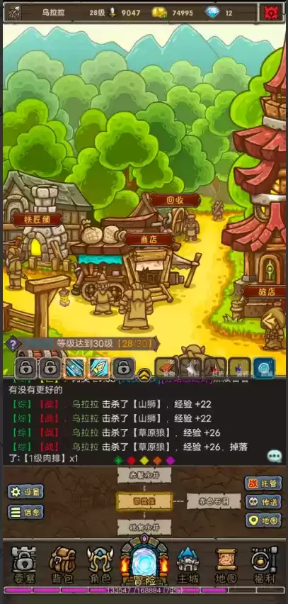 8.右边托管可以发现boss有没有刷新,也可以花石头传送,商店里有不少便宜升级材料,自己能用的技能书别分解,后面升级。