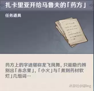 帮助马鲁夫向扎卡里亚医生问得药方,将药方内容正确的告知马鲁夫后,获得成就