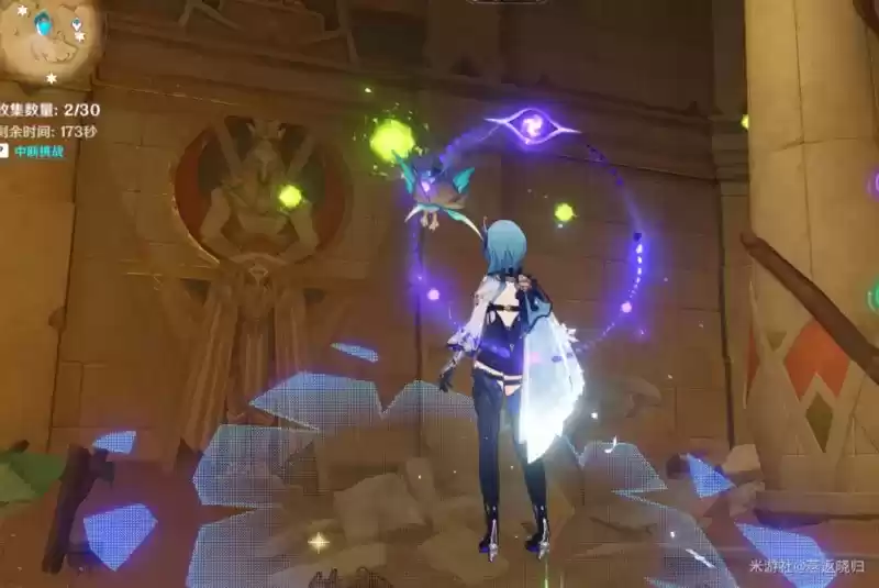到大厅后我们需要完成一下挑战,跟着小绿点走就可以了,会有隐藏的地板路指引我们往上面走的,点击挑战箭头会自动转向小绿点的,按照顺序走就不会掉下去,后面两个遗迹也是一样的挑战
