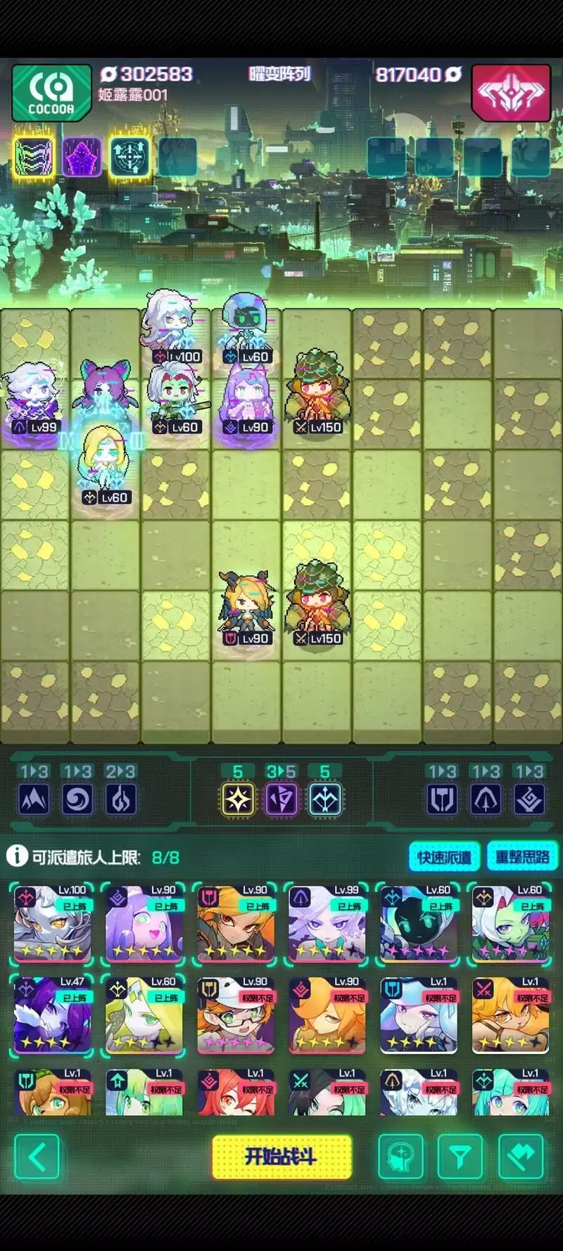 2、核心:杰德(破甲,攻速buff),非(核心输出),拉缇卡(五光羁绊),奈奈(专16,主t),一个能拖时间的角色(我用的是昆娜,其他能拖时间的角色都行,只要保证在第一个戈林被击杀前不死或者刚好阵亡就行)
