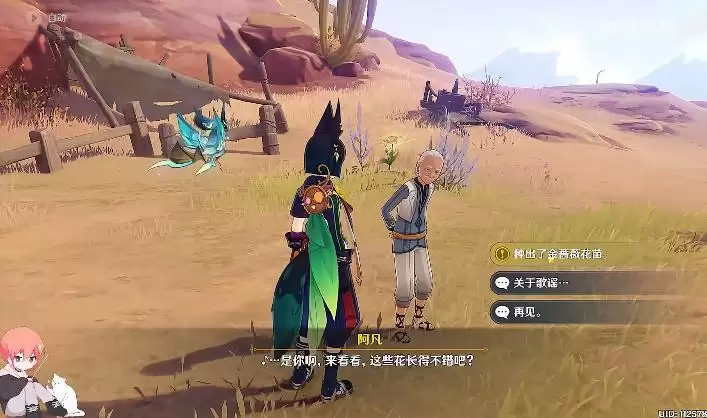 5、对话过程中选择,金色边框的句子:种出了金色的蔷薇花苗,需要连续对话三次。
