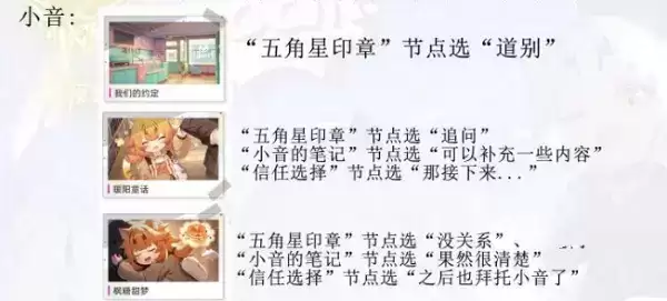 或“信任选择”节点选“之后也拜托小音了”进入第三结局