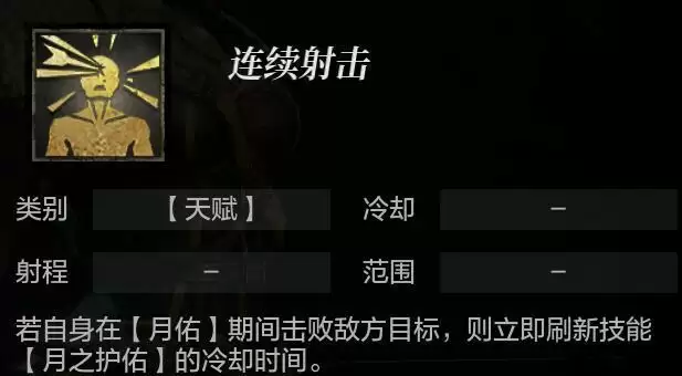 唤月者的天赋,主要辅助主动技能月之护佑。在唤月者开启月之护佑技能、获得月佑效果期间,击败敌方目标后,可以立刻刷新月之护佑的冷却时间。