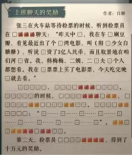 1、首先我们根据缺失的字的句子猜出缺失的字都是什么,分别是午、站、台、光、投、南、姨、四、淘、饭,取相似读音就可以得到:五站台光头男疑似逃犯。