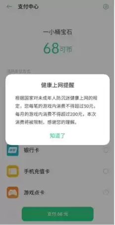 欢太游戏为了做好正确的教育引导,帮助未成年人树立正确消费观,在游戏消费限制方面设置了付费管控。未满8周岁的用户禁止游戏付费;8周岁以上未满16周岁的用户,单次充值金额不得超过50元人民币,每月充值金额累计不得超过200元人民币;16周岁以上未满18周岁的用户,单次充值金额不得超过100元人民币,每月充值金额累计不得超过400元人民币;进入游戏后发起充值行为,必须输入正确的支付密码,如无支付密码或支付密码错误,则不会成功支付。确保未成年人在游戏娱乐时的网络安全,进一步呵护未成年人健康成长。