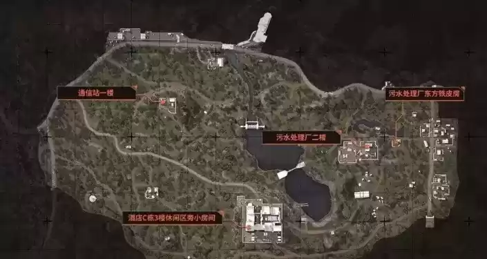 北部山区:通信站一楼、污水处理厂二楼、污水处理厂东方铁皮房、酒店C3休闲区旁小房间