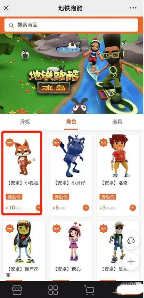 在地铁跑酷微信公众号内购买小狐狸