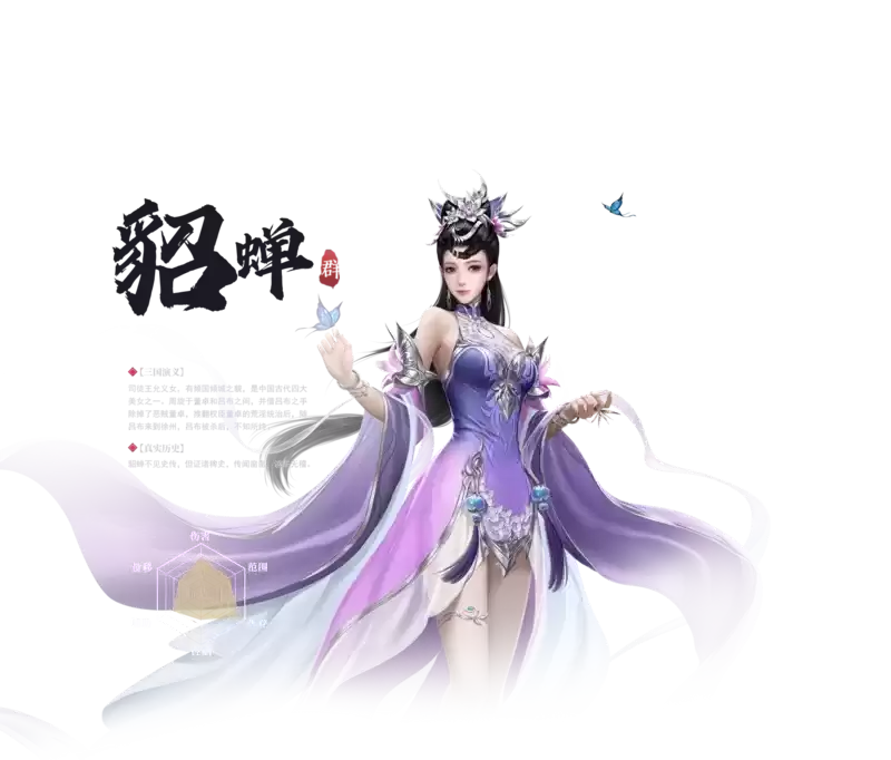 《极无双2》游戏中武将貂蝉是司徒王允义女,有倾国倾城之貌,是中国古代四大美女之一。周旋于董卓和吕布之间,并借吕布之手除掉了恶贼董卓,推翻权臣董卓的荒淫统治后,随吕布来到徐州,吕布被杀后,不知所终。那么今天小编就给大家介绍一下极无双2貂蝉角色图鉴,有需要的小伙伴不要错过了。