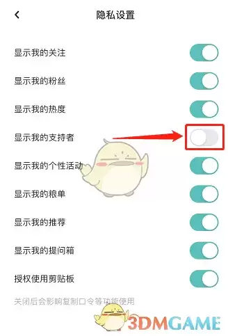 3、确认【显示我的支持者】右侧的开关