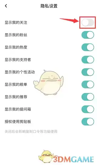 3、关闭显示我的关注右侧开关即可。