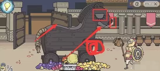 3、第二个是点击木马的嘴巴,希腊士兵出现,然后快速点击希腊士兵;