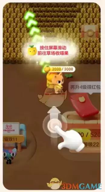 控制猫猫靠近果仓,点击升级按钮升级