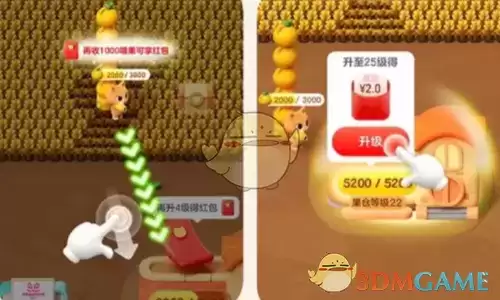 果仓升级后,可以随机领取红包奖励,红包的金额会越来越大