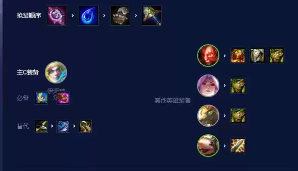 优先做大天使提升EZ输出上限,护卫前排能抗,带大天使的性价比是最高的。第二件补EZ法爆。第三件最好补巨杀打龙系和三星阵容。前排装备多做狂徒,提升护卫护盾厚度。布隆可以做点抗性装,补个日炎限制回复。