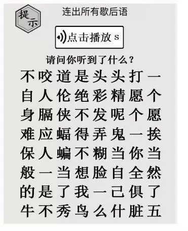 1、这一关是连连看歇后语,点击上面的播放,连出后面的歇后语