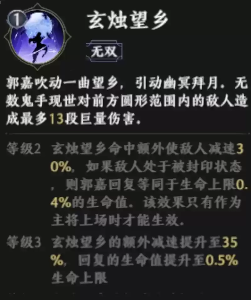 《极无双2》游戏中郭嘉是集控制、输出、回复于一体,是公平竞技高段位之中最常见的武将。可以说是当前技能形态最强的武将,很多玩家想知道他的技能情况,那么今天小编就给大家介绍一下极无双2武将郭嘉技能强度一览,有需要的小伙伴不要错过了。