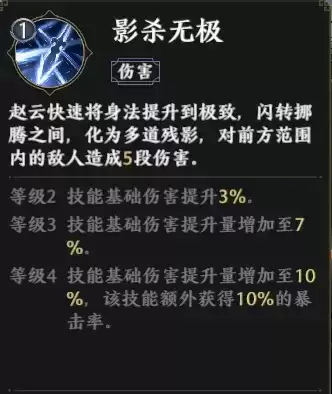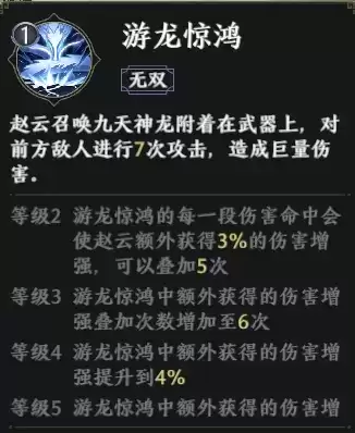 《极无双2》游戏中武将赵云是可以免费获得的,但是他是一个非常值得培养的武将。赵云穿上专属外观后,资质会提升到20,成为金将;他的神兵穿戴上专属外观后,资质也会提升到20。那么今天小编就给大家介绍一下极无双2武将赵云技能强度一览,有需要的小伙伴不要错过了。