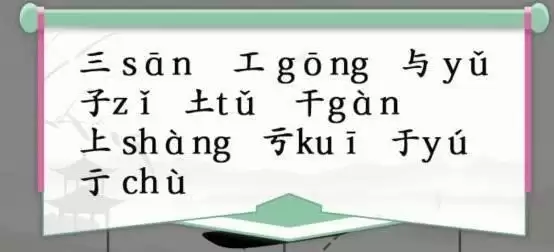 2、二字任意加一横是三字,中间加一竖是工,上半部分加一竖是土,下半部分加一竖是干,左边加一竖是上