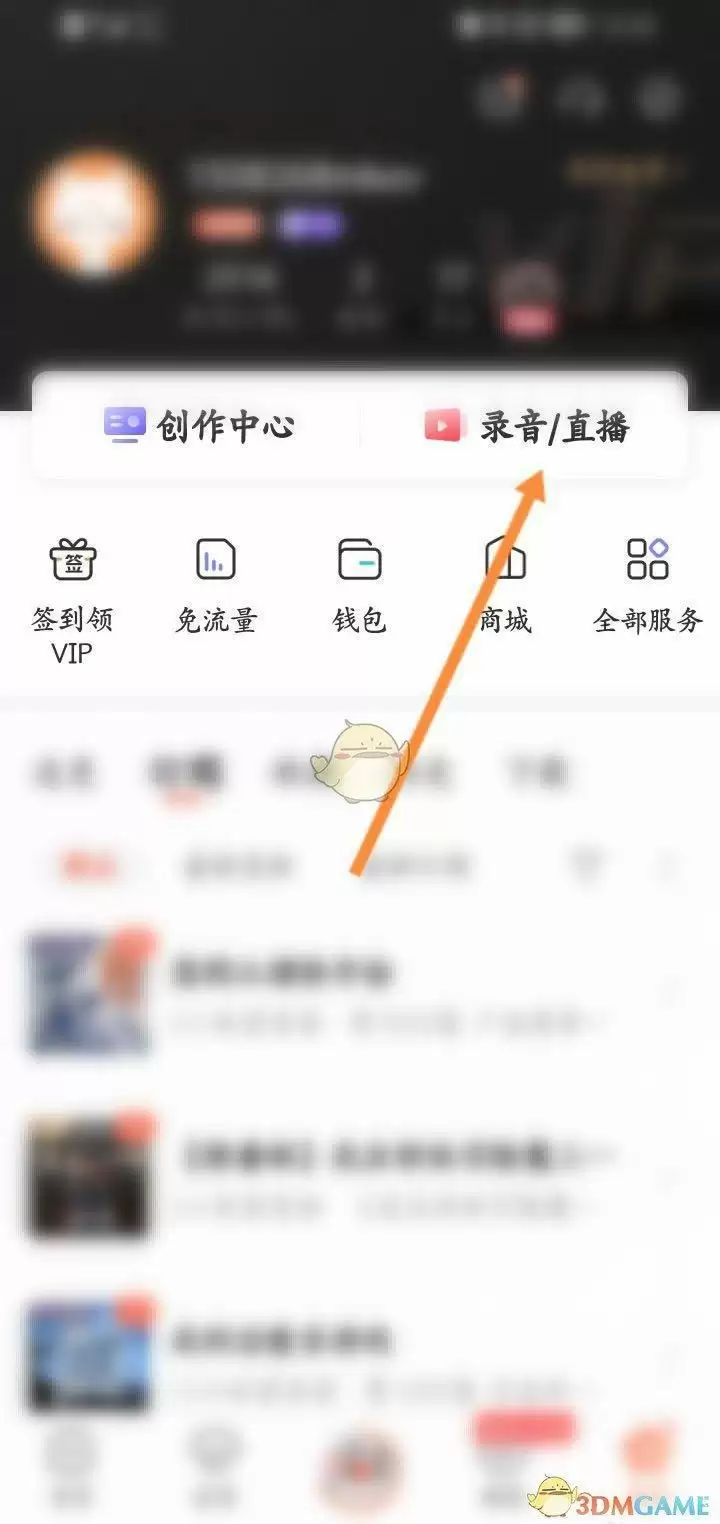 2、点击录音或直播。