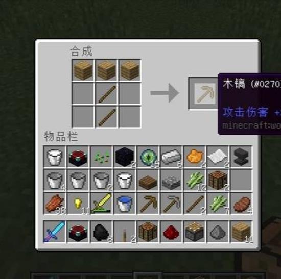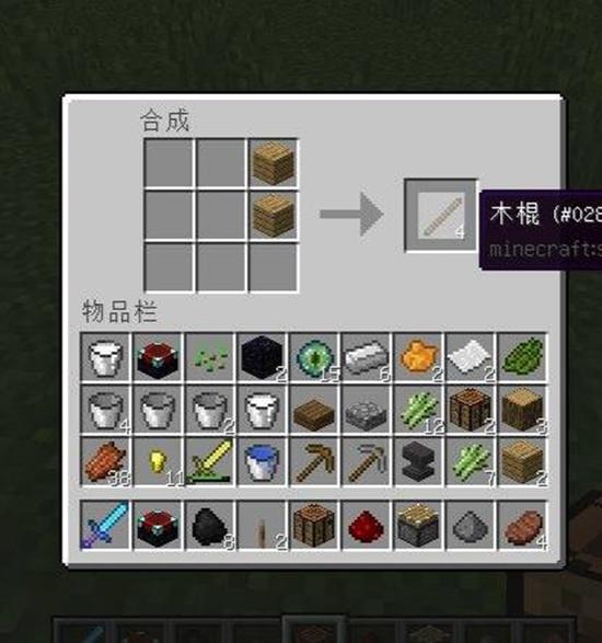 4、再把木板和木棒同时加工,变成木镐。