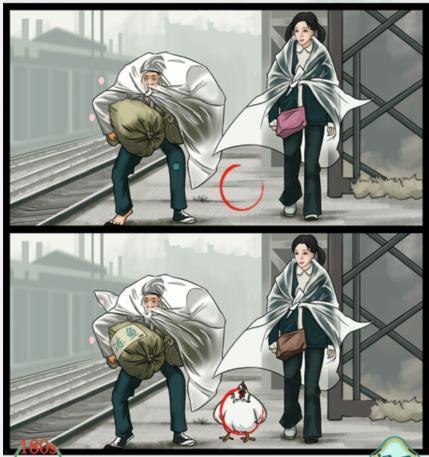 1、这一关是在两幅图中找出10个不同之处,明显的地方很明显