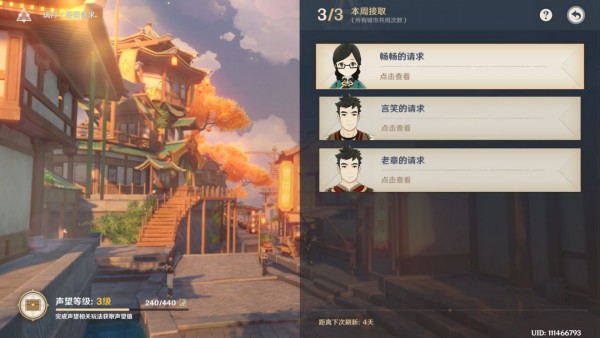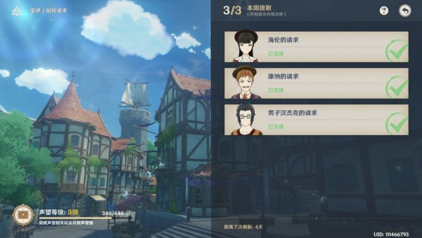 原神中居民请求任务接取的方法是在璃月港,有两个喜欢发牢骚的后勤小姐姐在线发奖励,完成任务也可以领(主线和支线,新发布的支线要完成新主线任务才能领,干公子就完事了),这是前期声望主要来源,开服玩家能直接领到三级声望。