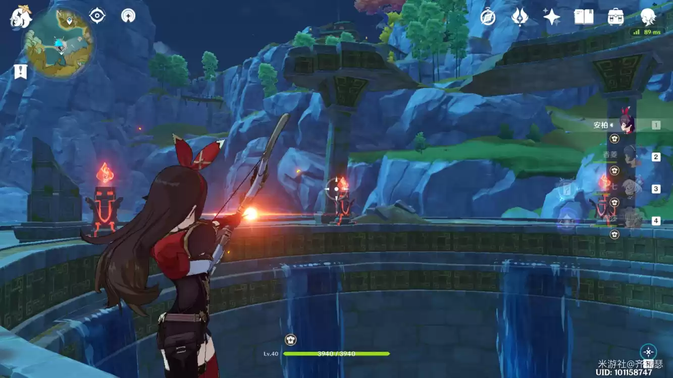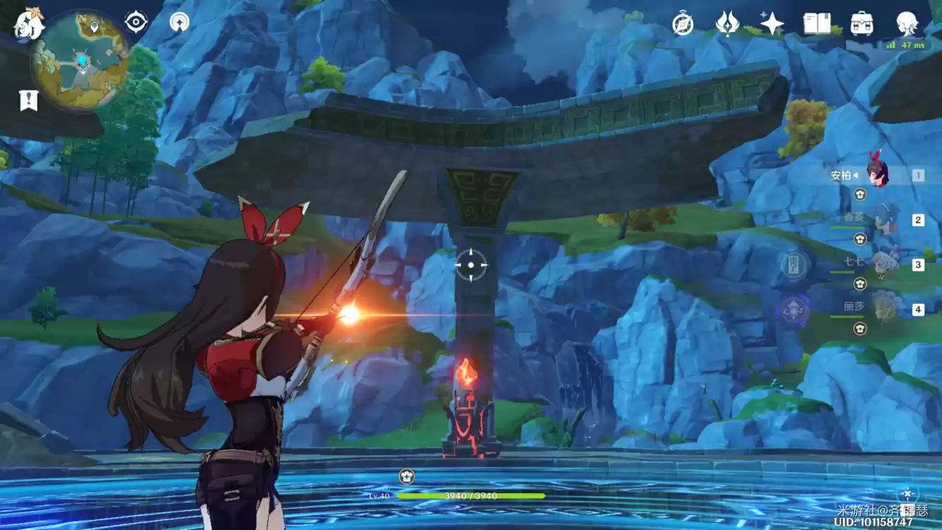 副本位于蓝色箭头这。这里有6个火炬,需要准备角色安柏这样效率高一点,同时火炬只需要点燃3个就能开启副本下面是点燃教程。