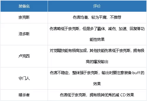 【结论】:走爆发的话推荐卢克西,走续航流推荐暗杀者。其他装备可以用来过渡。奥兹玛装备选择