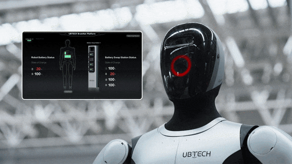为什么优必选能做成这件事?这就要提到优必选全球首发的热插拔自主换电系统。