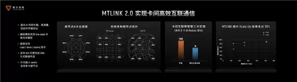 摩尔线程是如何解决这个问题的呢,基于自研的MTLINK 2.0实现的集合通信库,实现卡间高速互联,高出国内行业平均水平60%的带宽;同时基于MTT S5000的异步通信引擎,从而实现高效计算与通信并行,减少了15%的计算资源损耗,为大规模集群部署奠定了坚实基础。