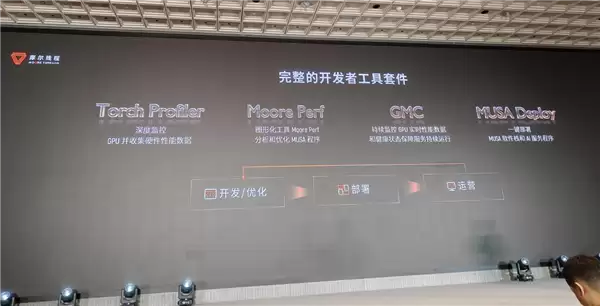 此外,摩尔线程还提供了完整的开发者工具套件,如深度监控GPU并收集硬件性能数据的Torch Profiler,以及可以一键部署MUSA软件栈和AI服务程序的MUSA Deploy等。