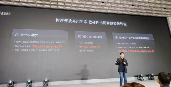 在开发生态兼容上,基于Triton-MUSA编译器 + MUSA Graph实现DeepSeek R1推理加速1.5倍,全面兼容Triton等主流框架。
