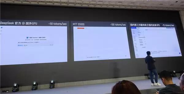 通过实测,MTT S5000树立了DeepSeek全量模型推理速度的新标杆:跑满血DeepSeek R1推理模型,速度达到100 tokens/s。