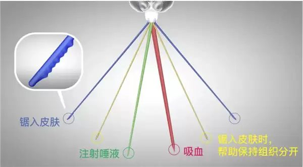 据了解,蚊子的嘴并非简单的“吸管”,而是一套由6根细如发丝的构件组成的“微型手术套装”,包括负责切开皮肤的“锯子”、撑开口子的“扩张钳”、注射物质的“注射器”和吸血的“吸管”,这些都藏在可伸缩的喙鞘中。