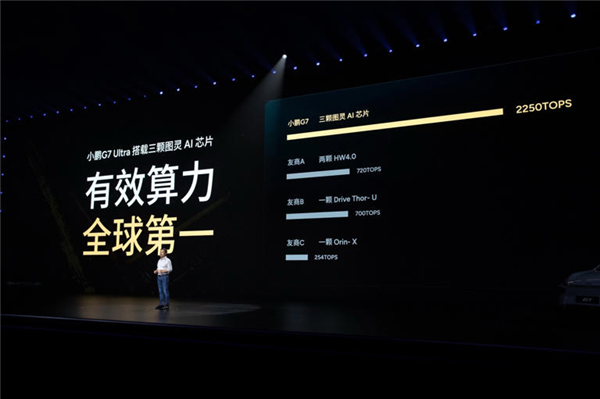 还有就是小鹏自研的图灵芯片,采用台积电 7nm 工艺,单颗算力 750 TOPS,也挺强的,G7 Ultra 装了三颗,理论上能实现 300 亿参数的本地大模型部署。
