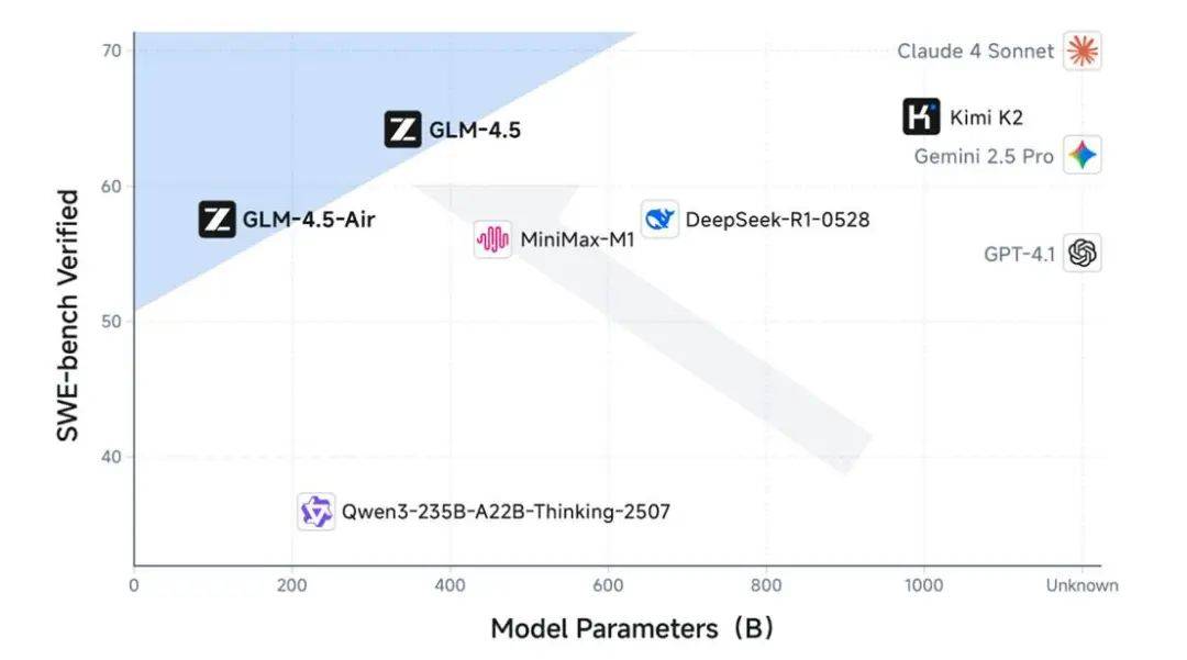 在WAIC结束后,智谱也加入了进来,开源了旗舰混合推理模型GLM-4.5与GLM-4.5-Air,以及这两个模型的基础模型(Base)与向量化版本(FP8),均采用MIT开源许可证发布,可用于商业用途和二次开发。GLM-4.5拥有3550亿总参数量,其中320亿活跃参数;GLM-4.5-Air更轻巧些,拥有1060亿总参数量,其中120亿活跃参数。可以说是用更小的参数规模实现了相当水平的智能水平。除了比主流大模型更便宜,它的生成速度最快可至100tokens/s,超越了其他模型。此外,与Qwen3-Coder或Kimi K2类似,GLM-4.5也是一款智能体友好的模型,这是一大趋势。