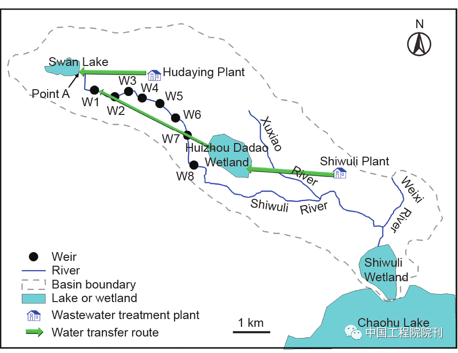其中,对境内的十五里河污水处理厂(提升后处理能力为2.5 × 105 t·d–1,相当于2.89 m3 ·s–1)和胡大郢污水处理厂(提升后处理能力为1.0 × 105 t·d–1,相当于1.16 m3 ·s–1)进行提标改造,使其能够满足生态流量保障需求。收集的雨水和天鹅湖湖水不再作为常规水源。