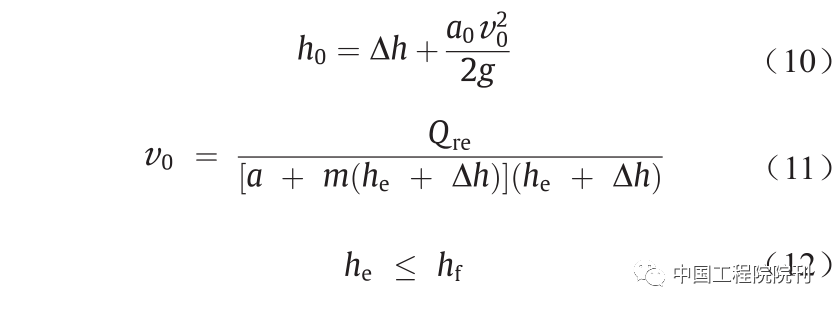 在上述公式中,设计流量(Qre)、流速(v0)、根据防洪要求确定的堰高(hf)以及参数σ、ε、Cd、b、g、a0、a、m为已知或预先确定的变量,并用于确定未知的堰高(he)。