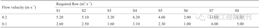 表1总结了流速v0 = 0.1 m·s–1和 0.2 m·s–1时所需的堰高。根据新框架确定的堰高低于现有的堰高。这一变化是因为旧堰高是根据河流中的设计洪水的峰值流量确定的,其没有考虑流速或生态流量的要求。而在新框架下计算的堰高,考虑了生态流量供应所需的实际流量情况以及流速维持的要求。