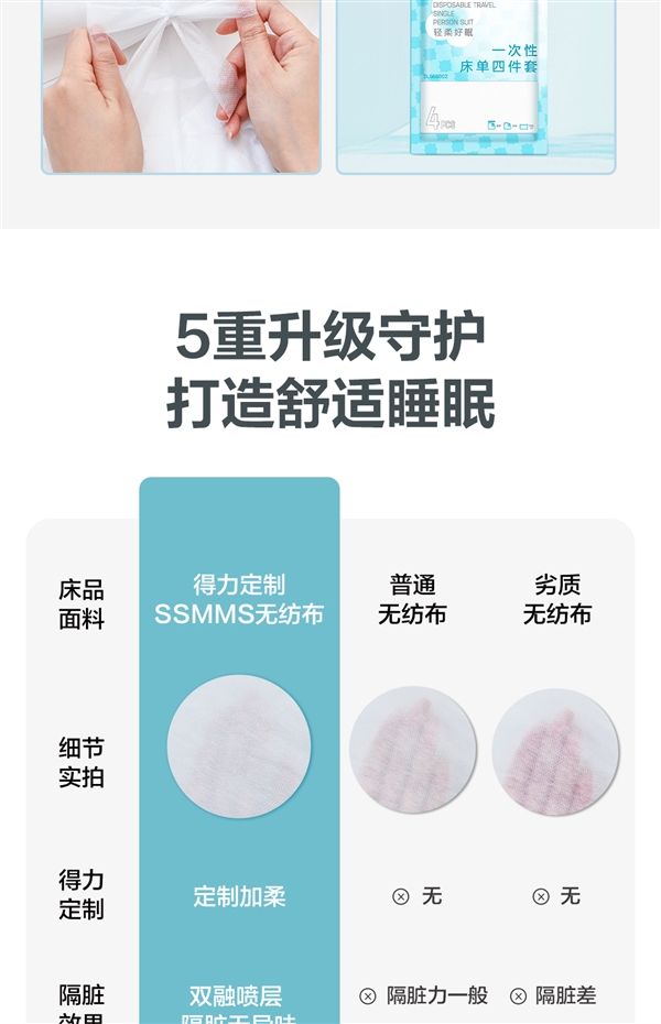 床单+被罩+枕套,方便便携,不占空间,差旅出行必备。