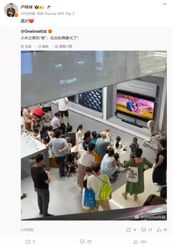 这一画面被网友记录并分享后,迅速引起“小米之家的‘家’理念在此刻生动呈现”的热烈讨论。小米集团高管卢伟冰也转发相关内容,并感慨道“这样的场景真令人感动”。