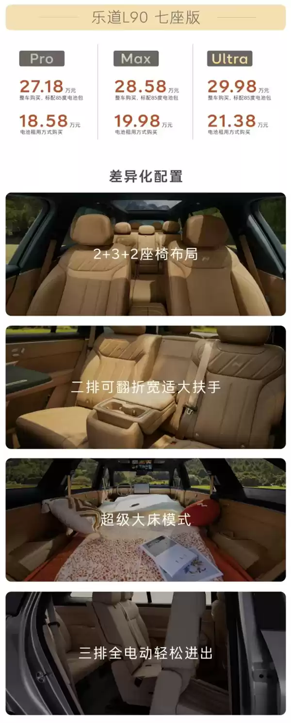L90分为六座和七座两种,均提供Pro、Max和Ultra三种配置,那么该如何选择呢?