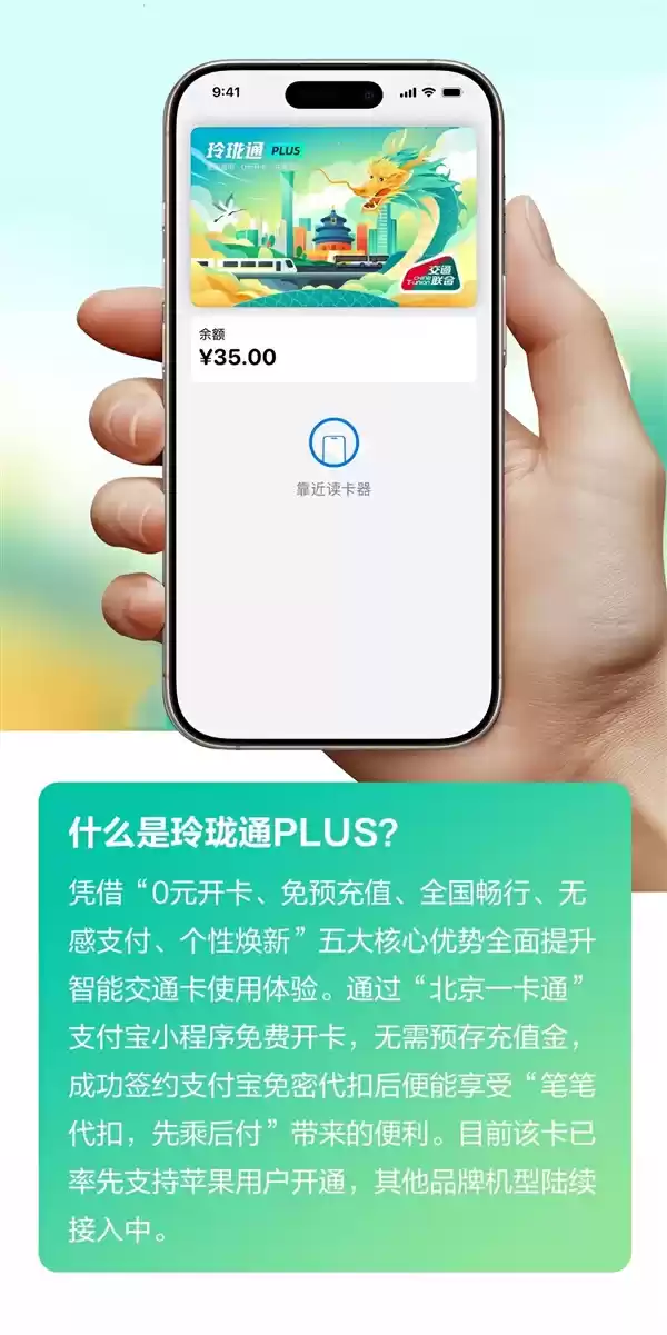 0元开卡、免预充值!北京联合支付宝发布“玲珑通PLUS”手机NFC交通卡:全国通用