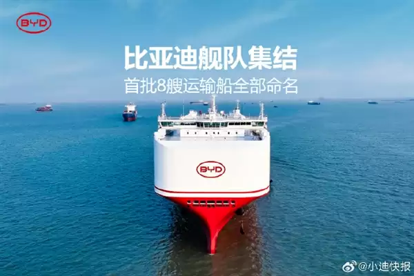 8月1日消息,小迪快报宣布,比亚迪首支出海舰队的8艘运输船已全部完成命名。
