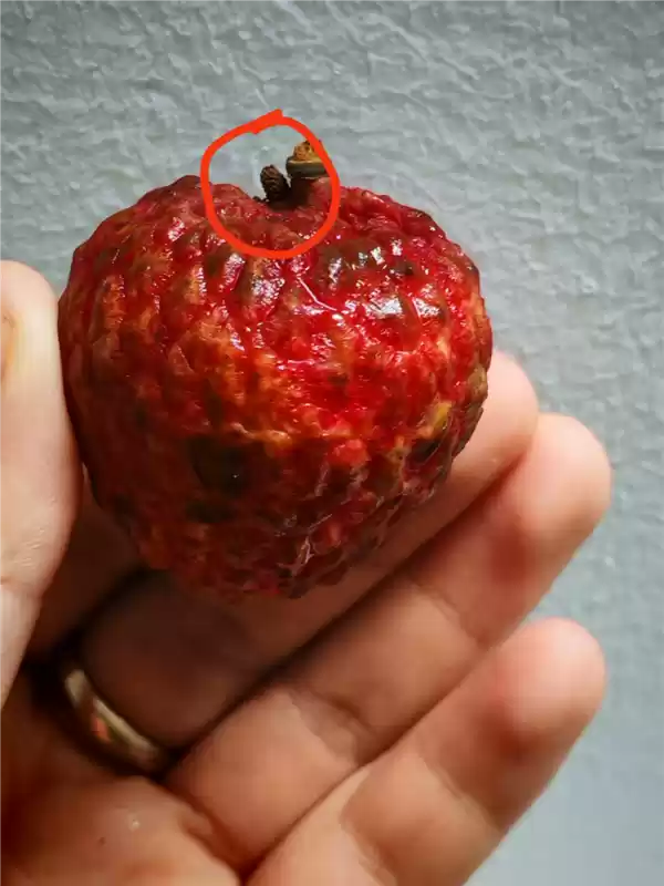 那么在茫茫荔枝中如何挑选果核小的荔枝呢?直接说结论吧,选择果实应该选择尾部稍尖的,不选尾部浑圆的。