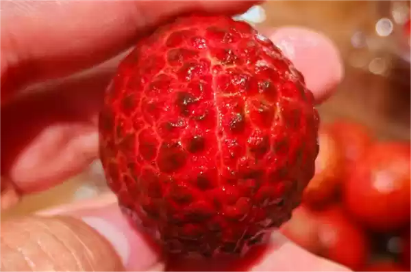 山竹:这种果子较硬,力气不够可能无法用手捏碎,可以把果实中间用桌子的直角边角摁压一个压痕,再放在两个手手心上,双手手指交叉相扣挤压果实,这样可以开得更轻松。