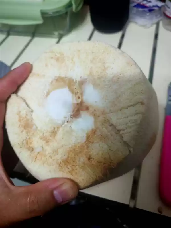 稍微观察就会发现,此处周围的三个白色斑块,选取一个孔用筷子等硬物戳几下这几个孔(大概率是最大的那个孔)就能攻破椰子的防线。