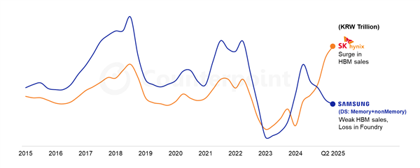 三星的HBM出货量份额从2024年同期的41%骤降至2025年第二季度的17%,而SK海力士则凭借在HBM领域的成功,成为英伟达的关键合作伙伴,营业利润持续增长。