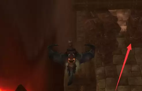 三、进入山洞后来到熔岩地区,找到箭头所指的NPC,如图所示: